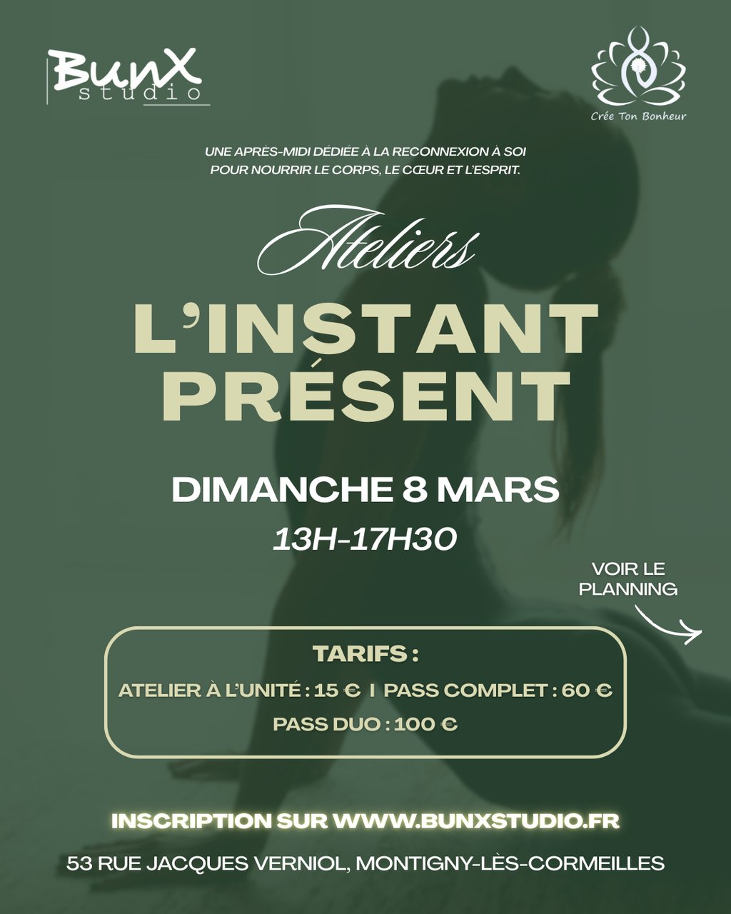 Offrez-vous un après-midi pour vous reconnecter à l’instant présent, à travers le mouvement, la création et le toucher.